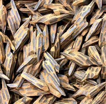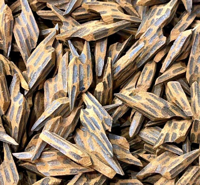 قطع العود المكسورة تبرز جودتها ورائحتها الفريدة.